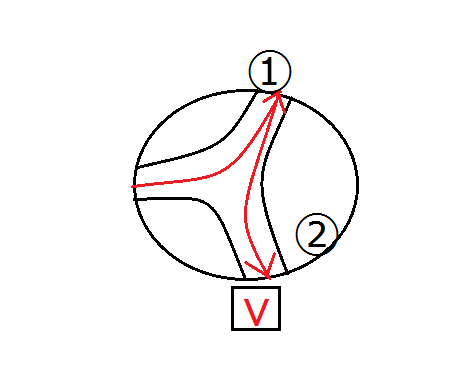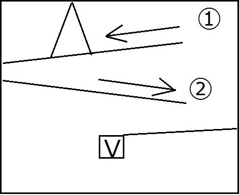 その為、一番右から玉が流れる為、玉の勢いが②の軌道よりつくと考えています。