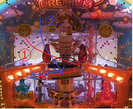 >トキオプレミアムのブッコミ弱めストロークで役物確率が上がるのか?という記事を読ませていただきましたが、記事では②と③のルートで玉の初動速度が速くなりイレギュラーの当たりが高くなる可能性があるとのことでした。
