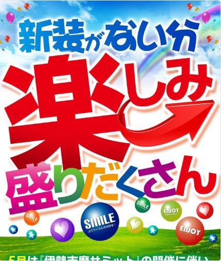 先日、記事にもアップしましたが、5月は伊勢志摩サミットにより新台入替自粛期間となります。