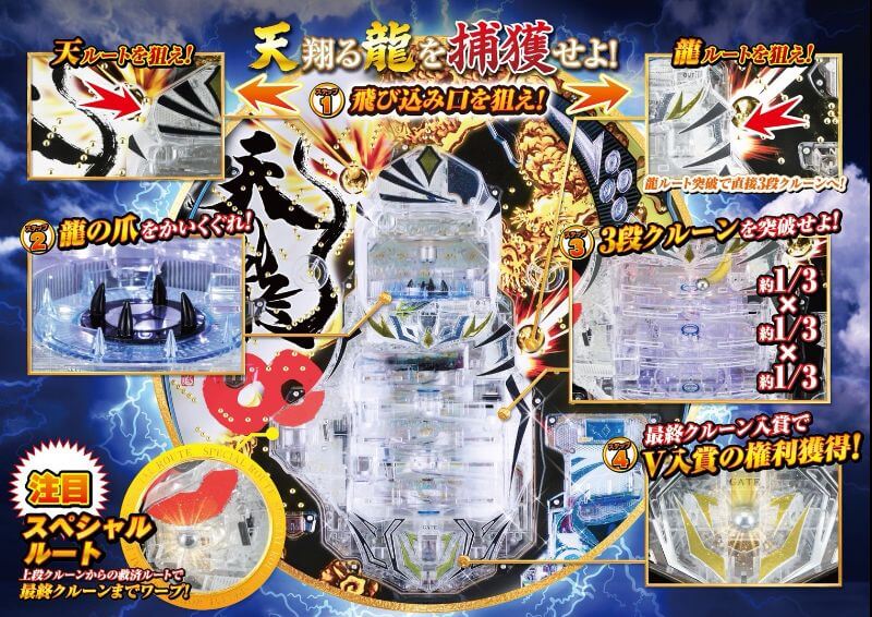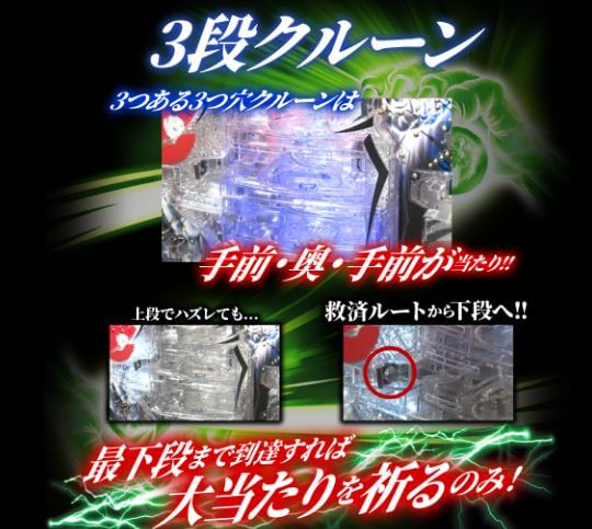 龍の爪突破率はメーカーサイトに書いてありませんが、3段クルーンは1/3×1/3×1/3と書いてありますね。