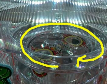 上記矢印のように、角度をつけ減速して回転体に向かう軌道のほうが体感的に良いと感じています。