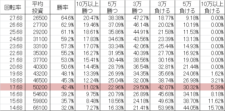 算出条件(通常時2000回転。電サポは取りきって止め。4円等価交換。)
