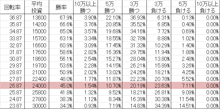 算出条件(通常時2000回転。電サポは取りきって止め。4円等価交換。)