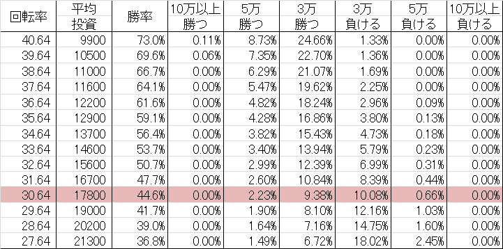 算出条件(通常時2000回転。電サポは取りきって止め。4円等価交換。)