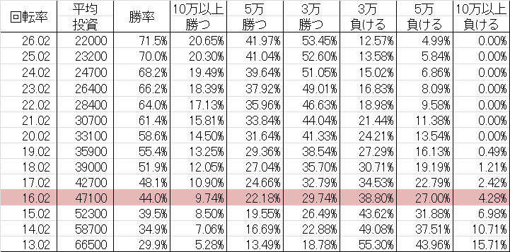 | 交換率 | 回転数/千円 | 推定持ち比 |
