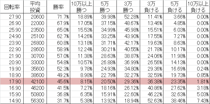 | 交換率 | 回転数/千円 | 推定持ち比 |