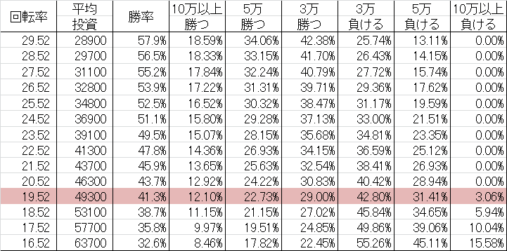 | 交換率 | 回転数/千円 | 推定持ち比 |