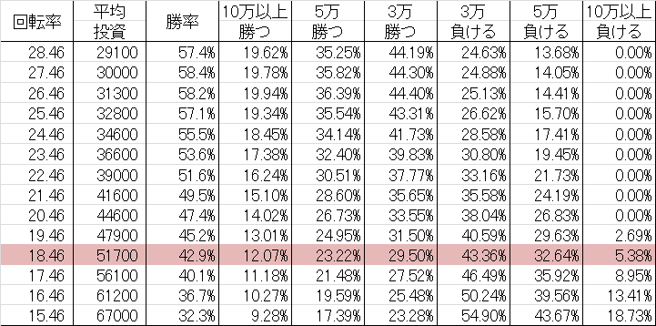 | 交換率 | 回転数/千円 | 推定持ち比 |
