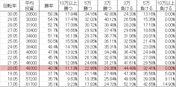 | 交換率 | 回転数/千円 | 推定持ち比 |