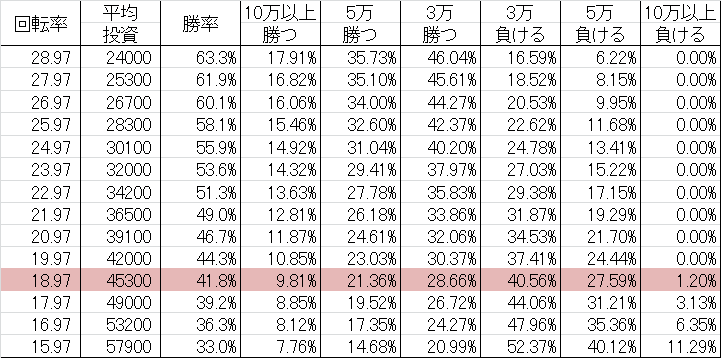 | 交換率 | 回転数/千円 | 推定持ち比 |