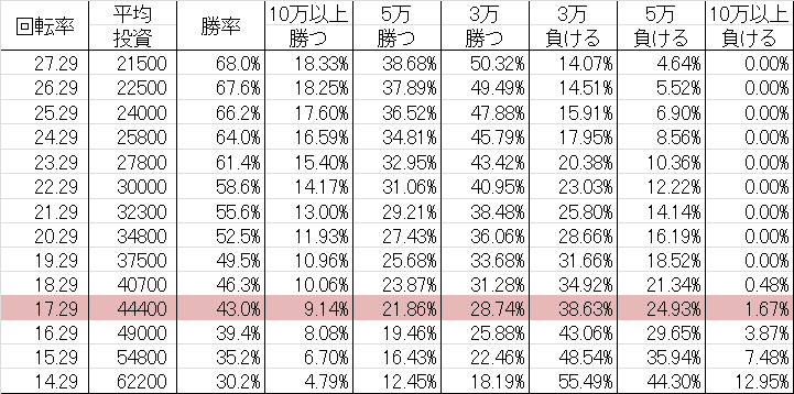 | 交換率 | 回転数/千円 | 推定持ち比 |