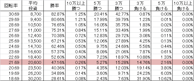 | 交換率 | 回転数/千円 | 推定持ち比 |