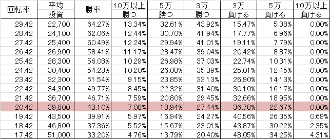 | 交換率 | 回転数/千円 | 推定持ち比 |