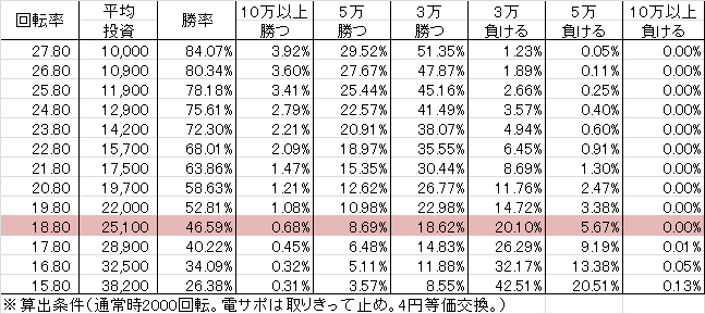 | 交換率 | 回転数/千円 | 推定持ち比 |