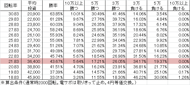 交換率 | 回転数/千円 | 推定持ち比 |