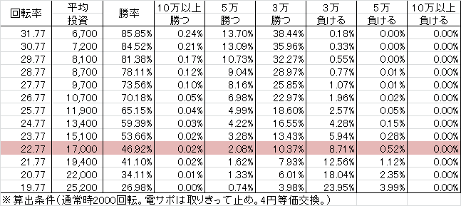 交換率 | 回転数/千円 | 推定持ち比 |