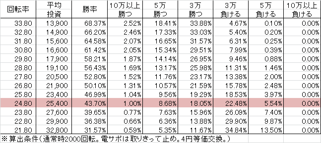 | 交換率 | 回転数/千円 | 推定持ち比 |