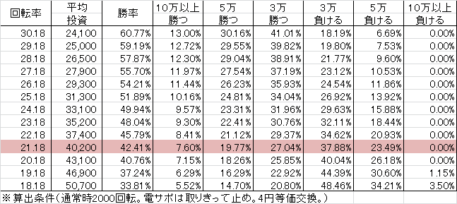 ※電サポ終了後4回転は通常回転に含まずに計算してください