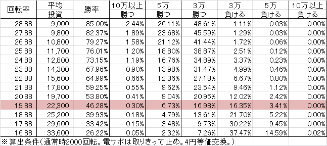 | 交換率 | 回転数/千円 | 推定持ち比 |