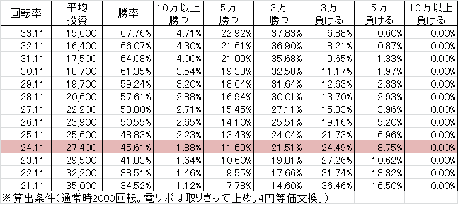 | 交換率 | 回転数/千円 | 推定持ち比 |