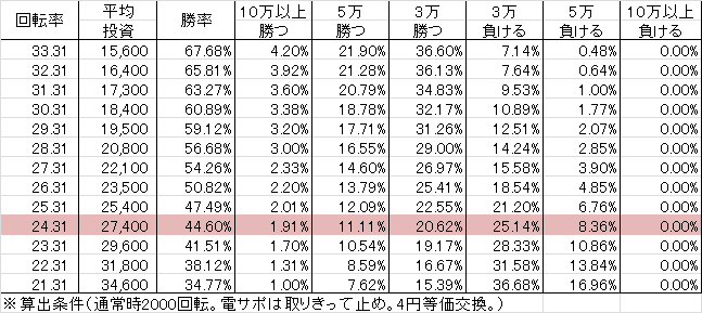 交換率 | 回転数/千円 | 推定持ち比 |