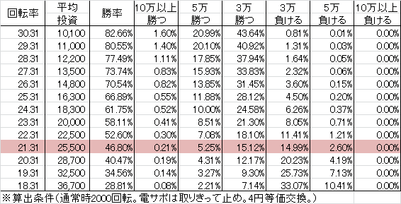 | 交換率 | 回転数/千円 | 推定持ち比 |