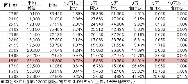 | 交換率 | 回転数/千円 | 推定持ち比 |