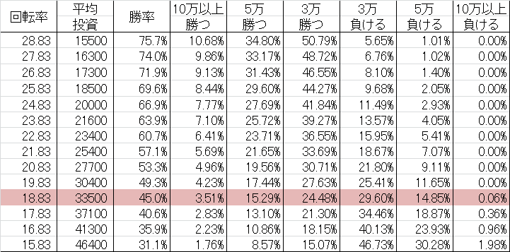 算出条件(通常時2000回転。電サポは取りきって止め。4円等価換。)交