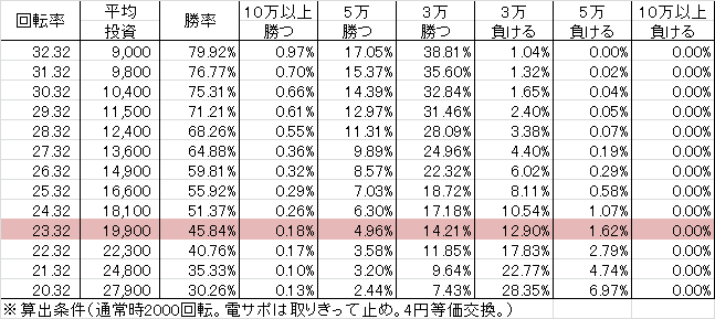 | 交換率 | 回転数/千円 | 推定持ち比 |