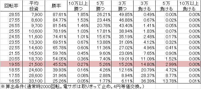 | 交換率 | 回転数/千円 | 推定持ち比 |