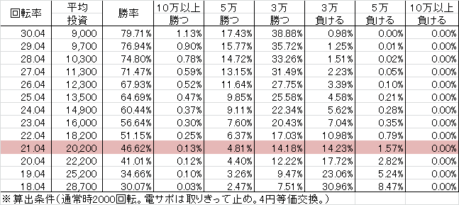| 交換率 | 回転数/千円 | 推定持ち比 |