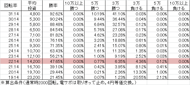 | 交換率 | 回転数/千円 | 推定持ち比 |