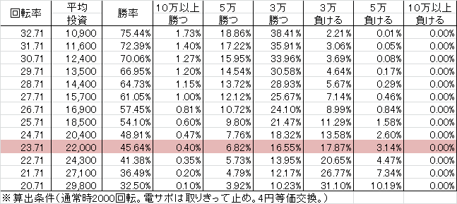 | 交換率 | 回転数/千円 | 推定持ち比 |