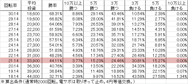 | 交換率 | 回転数/千円 | 推定持ち比 |