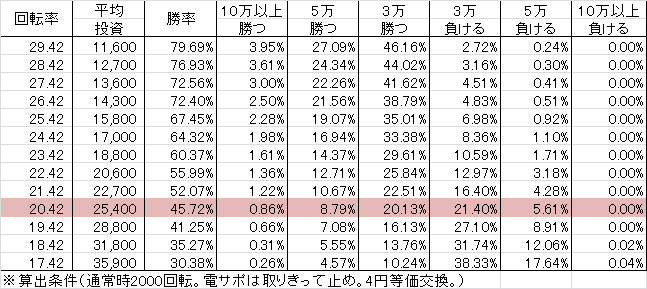 | 交換率 | 回転数/200玉 |