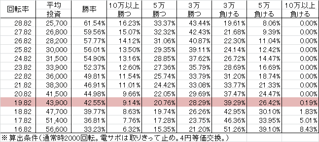 交換率 | 回転数/千円 | 推定持ち比 |