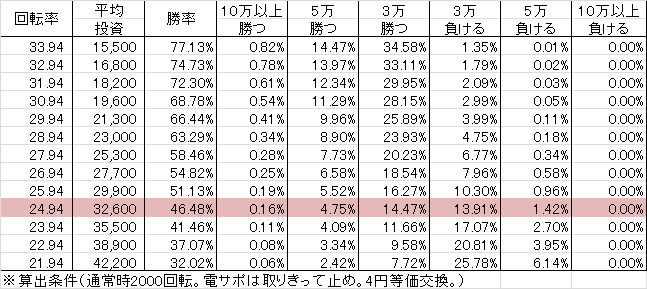 | 交換率 | 回転数/千円 | 推定持ち比 |