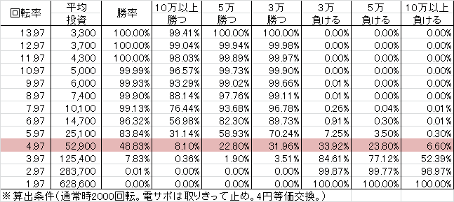| 交換率 | 回転数/千円 | 推定持ち比 |