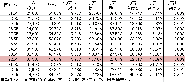 | 交換率 | 回転数/千円 | 推定持ち比 |