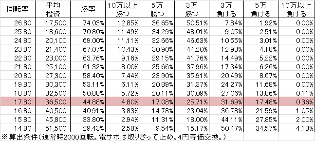| 交換率 | 回転数/千円 | 推定持ち比 |